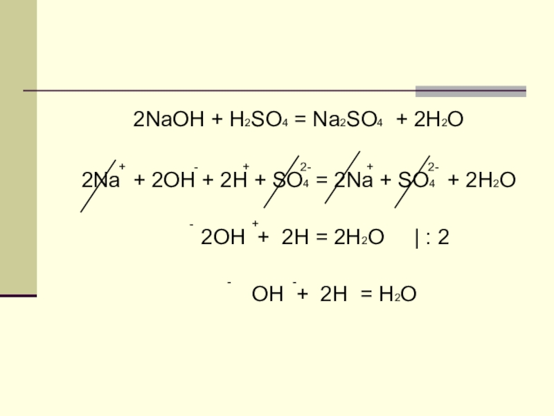 Слайд 102NaOH + H2SO4 = Na2SO4 + 2H2O