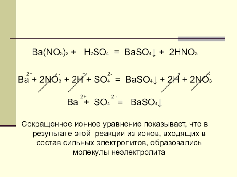 Сокращенное ионное уравнение показывает, что в результате этой реакции из ионов, входящих в состав сильных электролитов, образовались молекулы неэлектролита