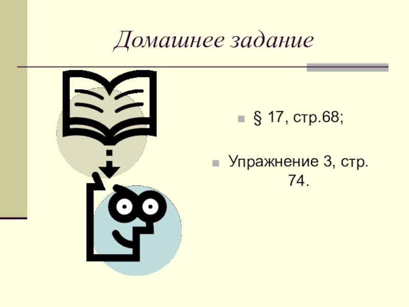 Домашнее задание§ 17, стр.68;Упражнение 3, стр. 74.