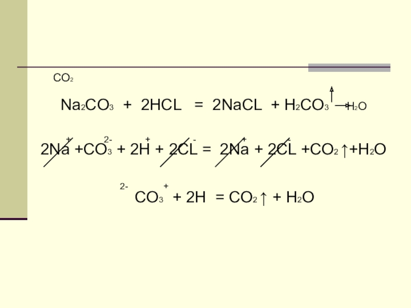 2Na +CO3 + 2H + 2CL = 2Na + 2CL +CO2 ↑+H2O