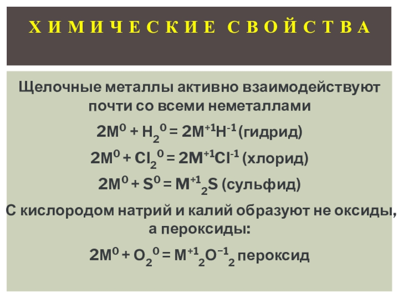 Щелочные металлы активно взаимодействуют почти со всеми неметаллами