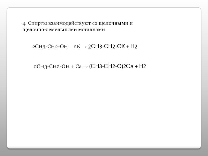 2СН3-СН2-ОН + Са → (СН3-СН2-О)2Са + Н2