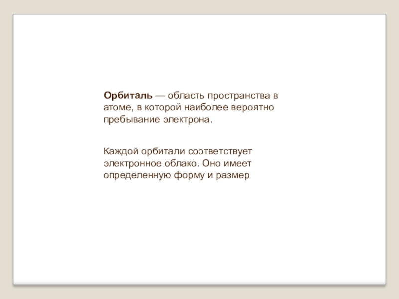 Каждой орбитали соответствует электронное облако. Оно имеет определенную форму и размер