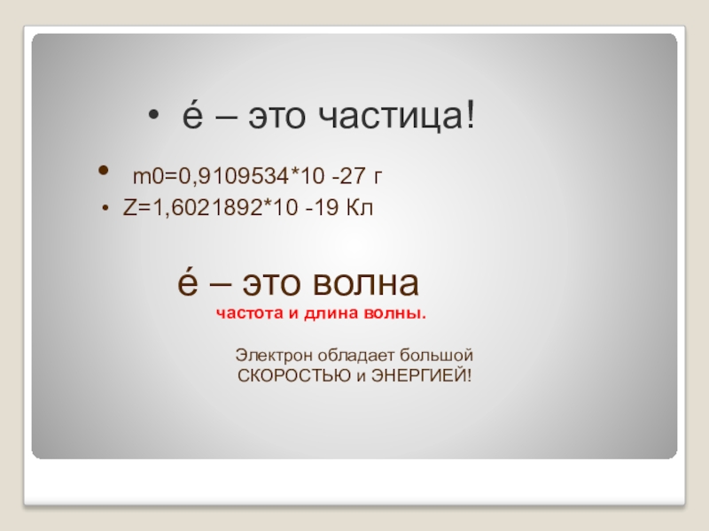 Электрон обладает большой СКОРОСТЬЮ и ЭНЕРГИЕЙ!