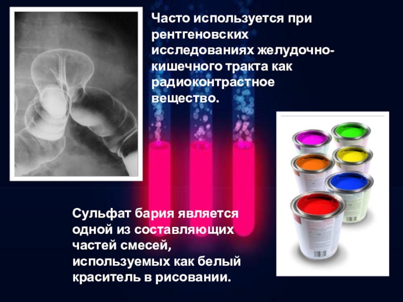 Как белый наполнитель для пластмасс, а также как компонент буровых растворов для увеличения их плотности.