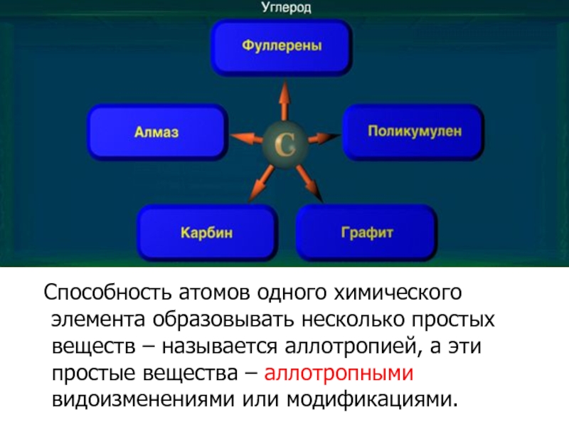 Слайд 15 Способность атомов одного химического элемента образовывать несколько простых веществ –