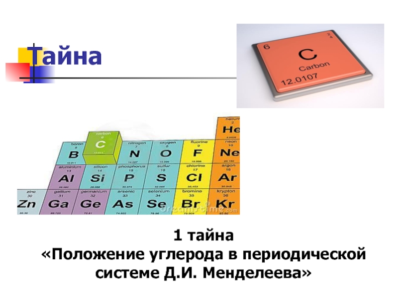 Тайна 1 тайна  «Положение углерода в периодической системе Д.И. Менделеева»