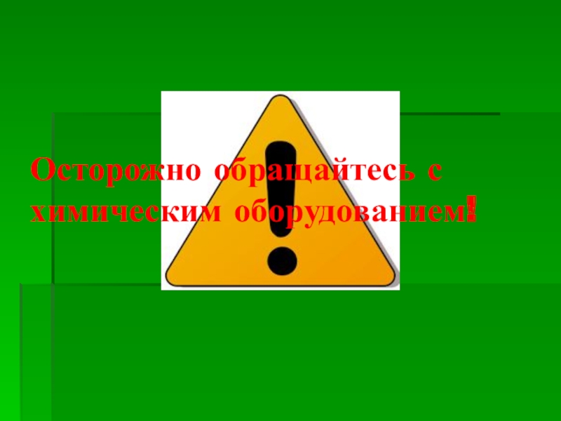 Слайд 11Осторожно обращайтесь с химическим оборудованием!