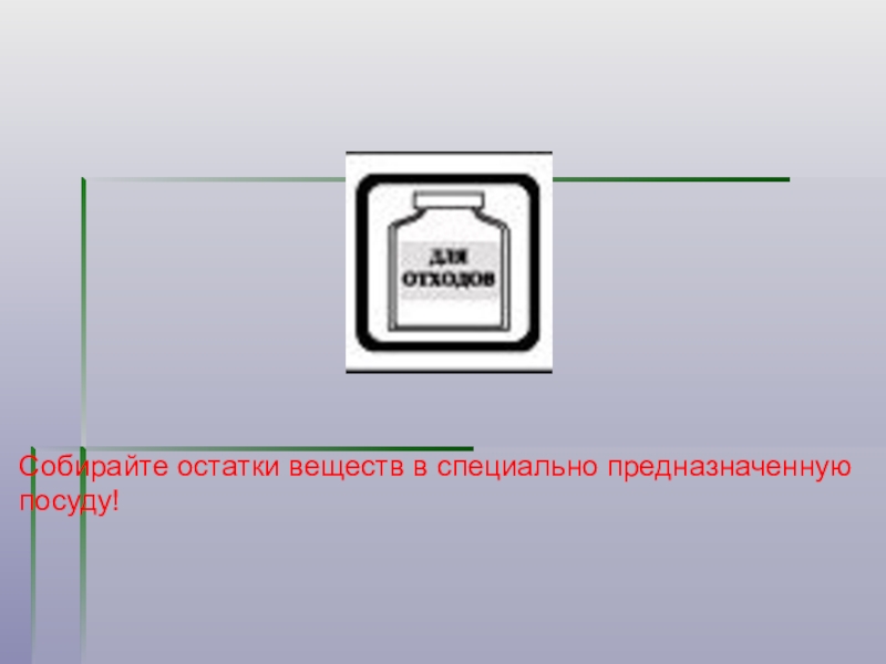 Слайд 10Собирайте остатки веществ в специально предназначенную