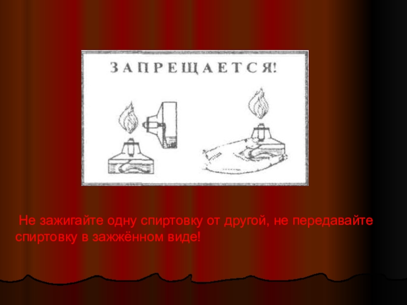 Слайд 3 Не зажигайте одну спиртовку от другой, не передавайте