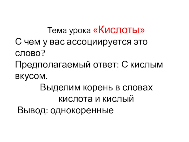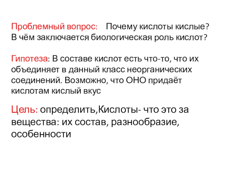 Цель: определить,Кислоты- что это за вещества: их состав, разнообразие, особенности