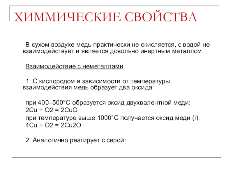 Слайд 8ХИММИЧЕСКИЕ СВОЙСТВА