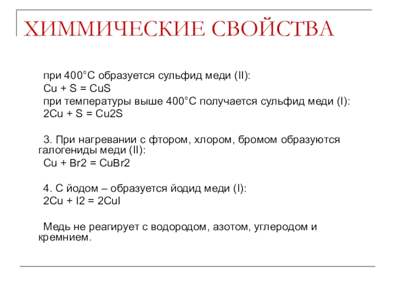 Медь не реагирует с водородом, азотом, углеродом и кремнием.