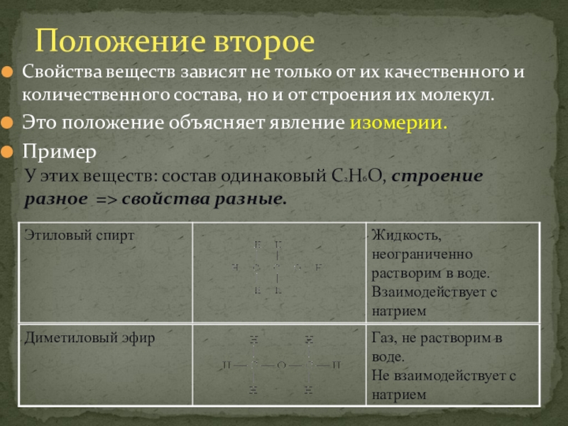 У этих веществ: состав одинаковый С2Н6О, строение разное => свойства разные.