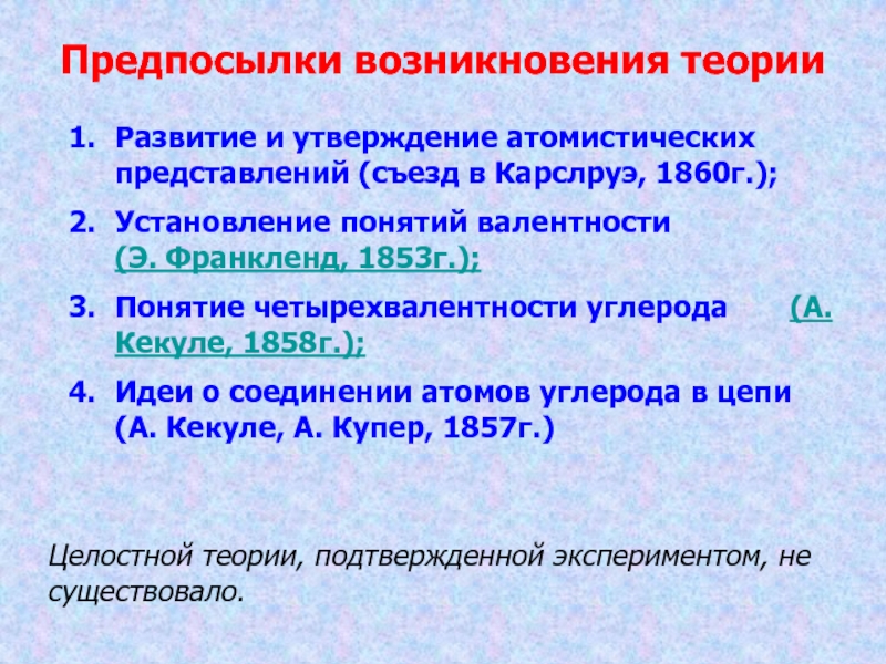 Целостной теории, подтвержденной экспериментом, не существовало.