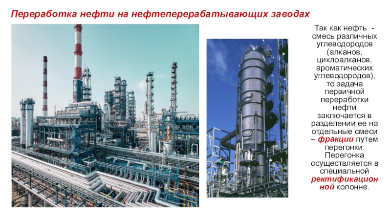 Переработка нефти на нефтеперерабатывающих заводах