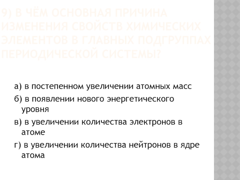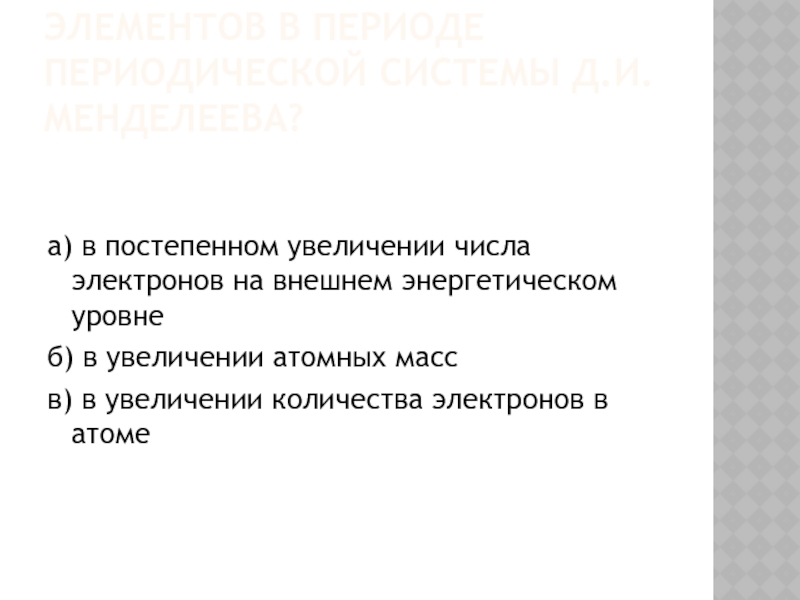 а) в постепенном увеличении числа электронов на внешнем энергетическом уровне