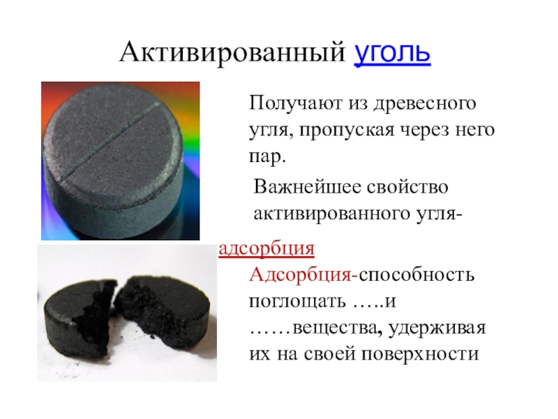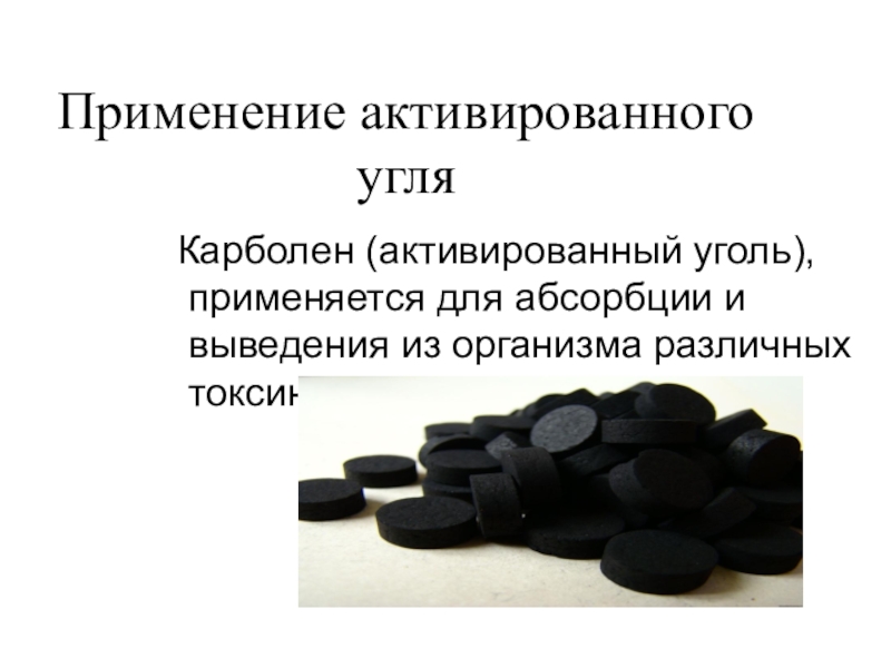 Карболен (активированный уголь), применяется для абсорбции и выведения