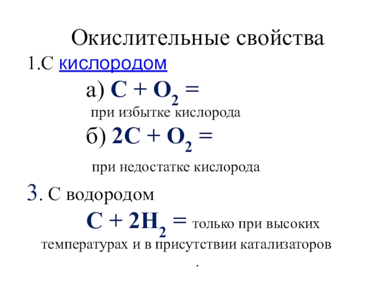 свойства – атомы С принимают четыре электрона, приобретают при этом степень окисления