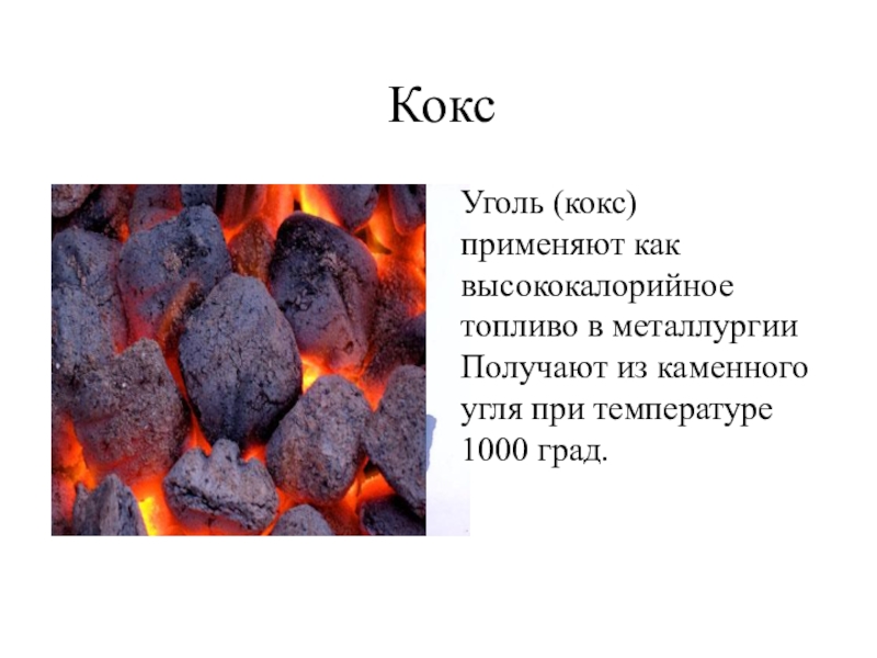 Уголь (кокс) применяют как высококалорийное топливо в металлургии