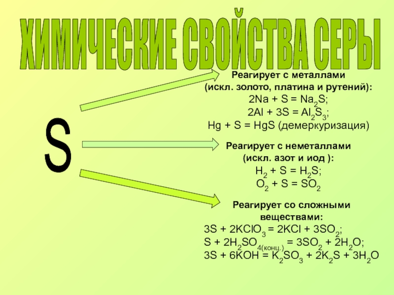 Степени окисления серы: −2 (окислительные свойства); 0;