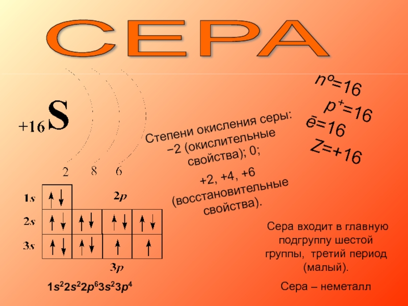 Сера входит в главную подгруппу шестой группы, третий период (малый).