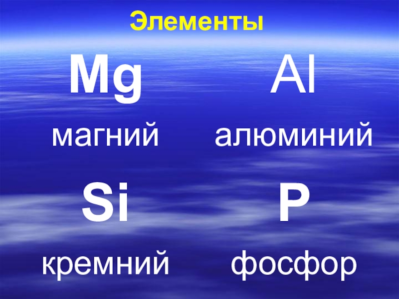 Элементы MgмагнийAlалюминийSiкремнийPфосфор