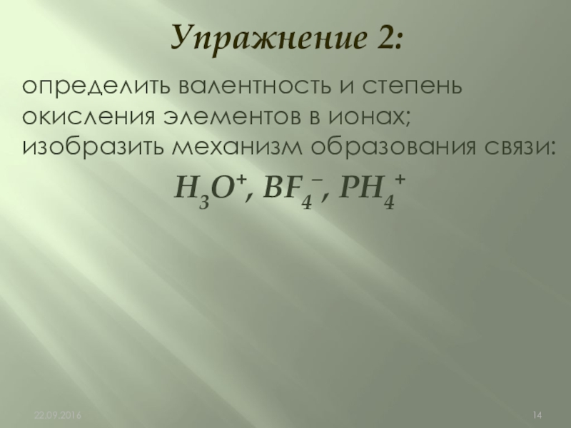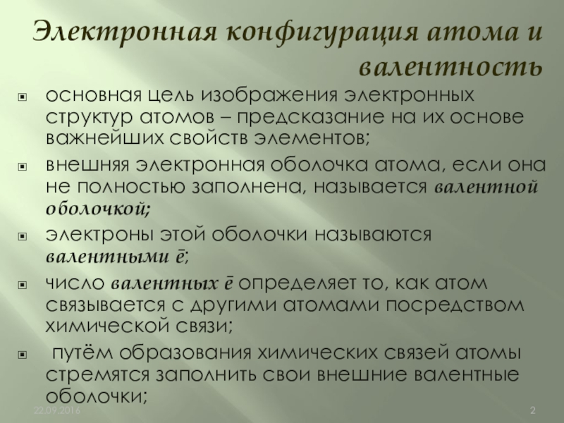 современное понятие «валентность» валентность – число химических связей, которое данный атом образует с другими атомами