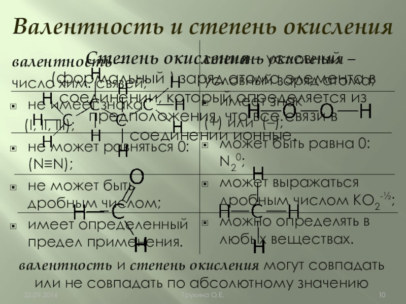 валентность и степень окисления могут совпадать или не совпадать по абсолютному значению