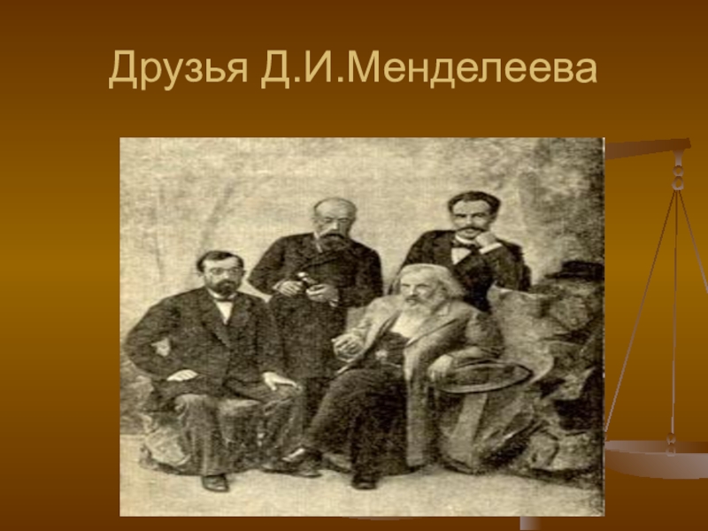 Н.Н.Зинин, И.Н. Крамской, И.Е.Репин, А.И.Куинджи, Н.А. Ярошенко и другие. Это были "менделеевские среды". Портреты, написанные Репиным и Ярошенко находятся в Третьяковской галерее.