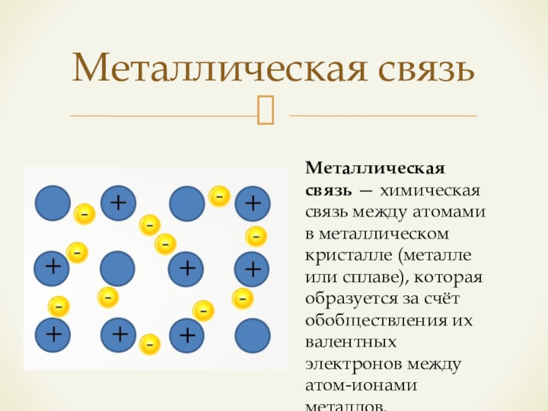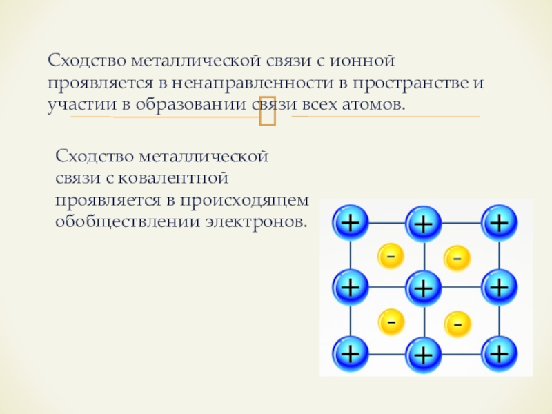 Сходство металлической связи с ковалентной проявляется в происходящем обобществлении электронов.