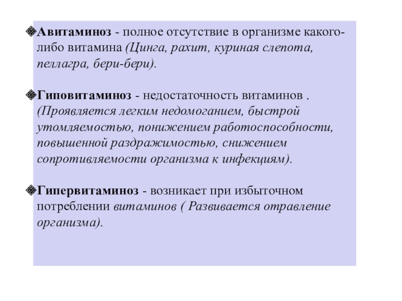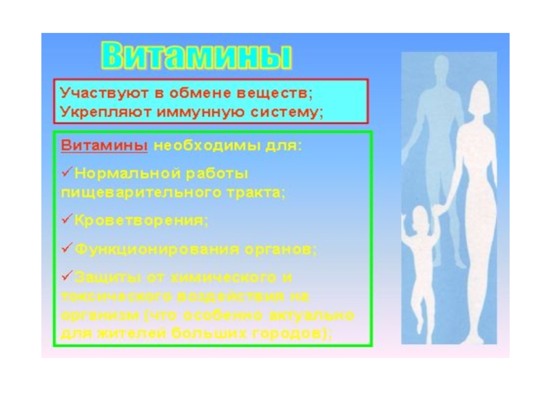 Потребность человека в витаминах зависит от его возраста, состояния здоровья , условий жизни , характера его деятельности, времени года, содержания в пищи основных компонентов питания