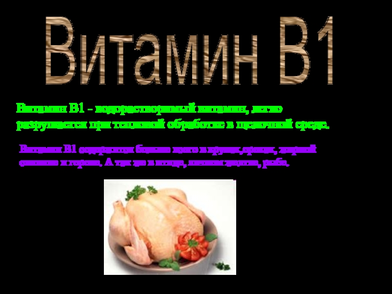 Витамин В1 содержится больше всего в крупах,орехах, жирной свинине и горохе. А так же в птице, яичном желтке, рыбе.