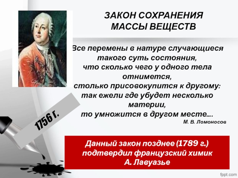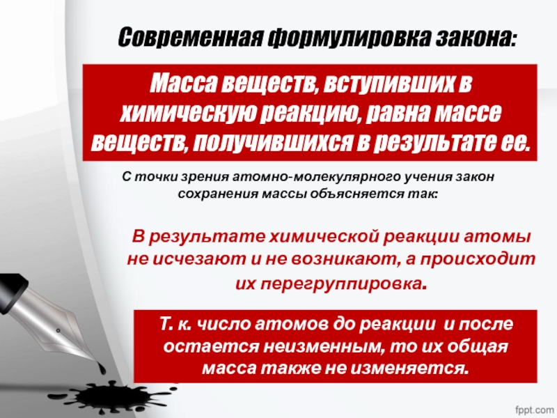 С точки зрения атомно-молекулярного учения закон сохранения массы объясняется так: