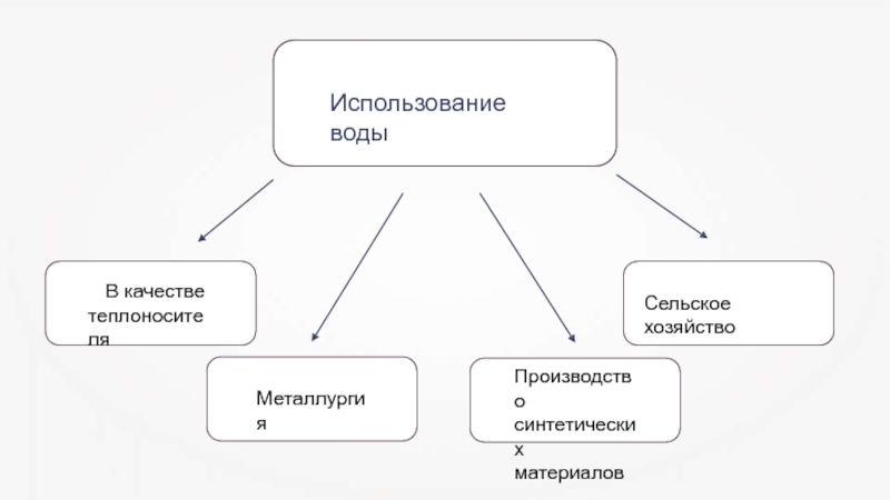 В качестве теплоносителяСельское хозяйствоПроизводство синтетических материаловИспользование водыМеталлургия