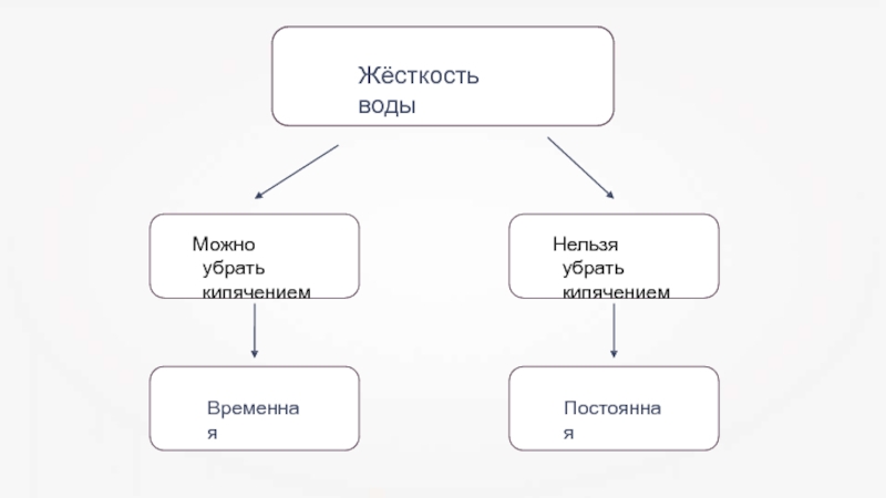 Жёсткость водыПостояннаяНельзя убрать кипячениемВременнаяМожно убрать кипячением