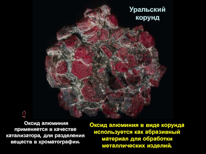 Оксид алюминия применяется в качестве катализатора, для разделения веществ в хроматографии.