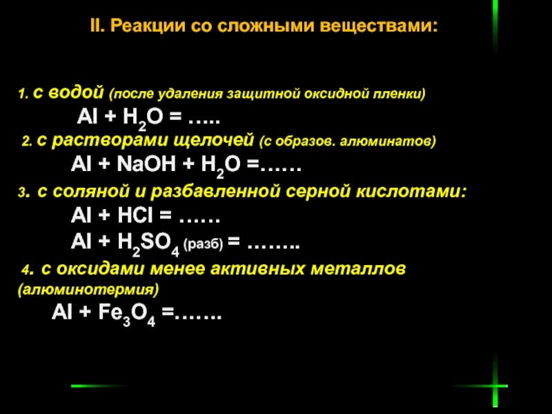 II. Реакции со сложными веществами: