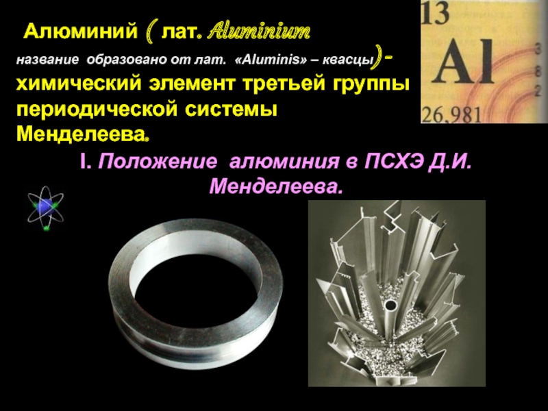 I. Положение алюминия в ПСХЭ Д.И.Менделеева.