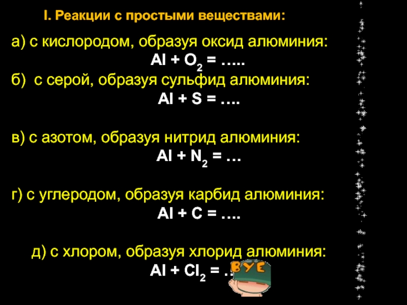 I. Реакции с простыми веществами: