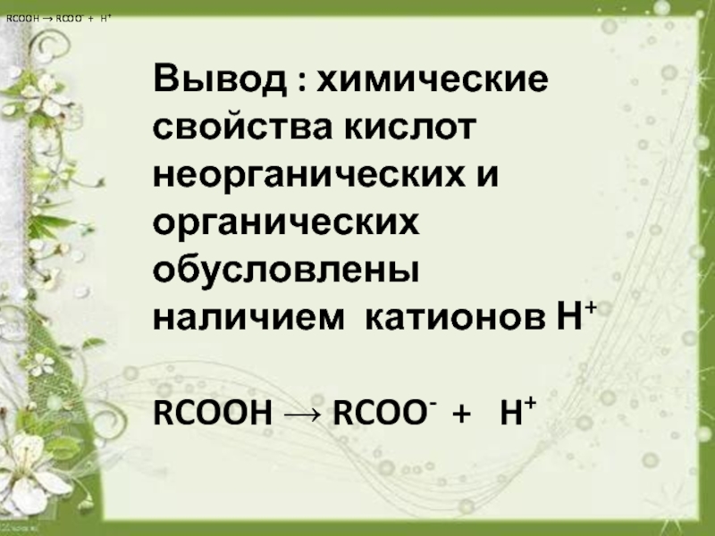 RCOOH → RCOO- + H+