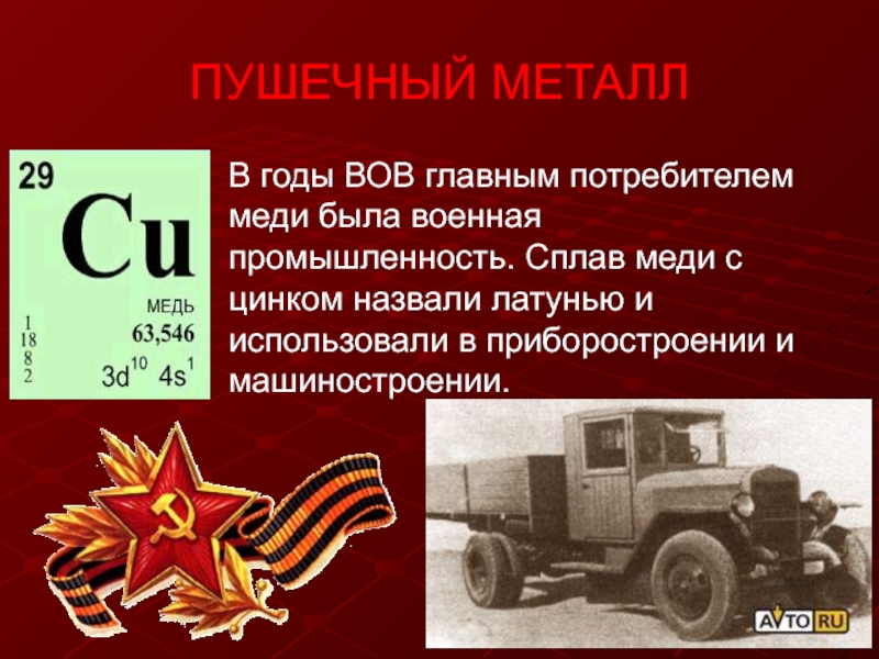 В годы ВОВ главным потребителем меди была военная промышленность. Сплав