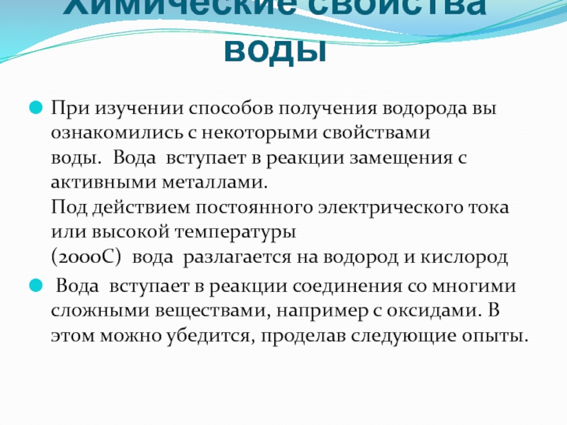 Слайд 7Химические свойства воды