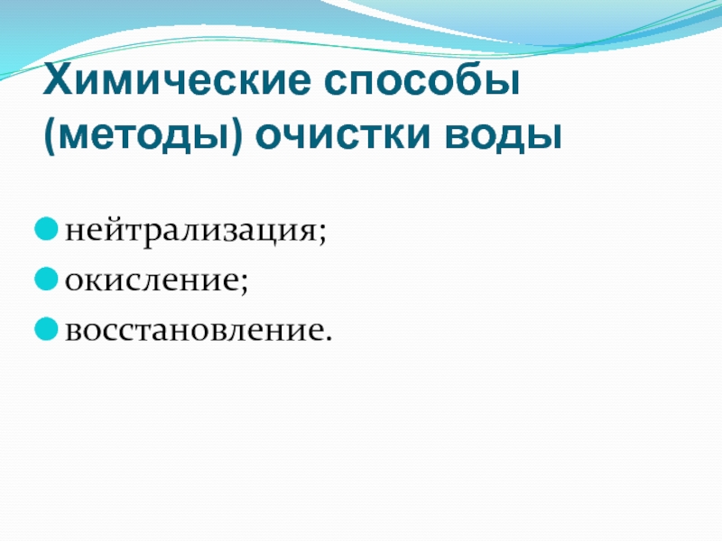 Слайд 13Химические способы (методы) очистки воды