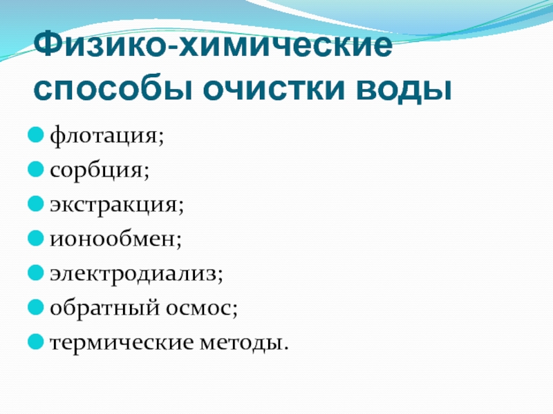 Слайд 14Физико-химические способы очистки воды