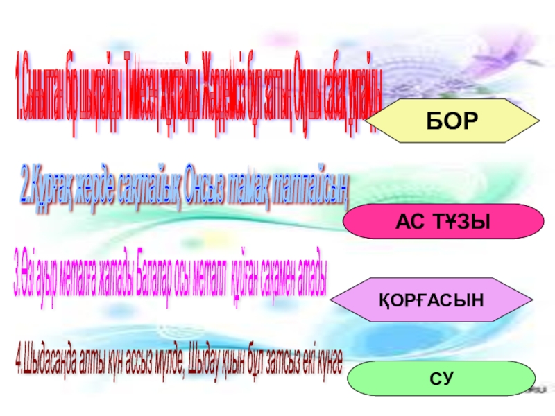 4.Шыдасаңда алты күн ассыз мүлде, Шыдау қиын бұл затсыз екі күнге