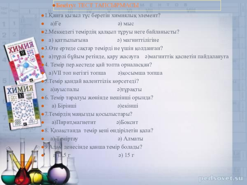 Бекіту: ТЕСТ ТАПСЫРМАСЫ