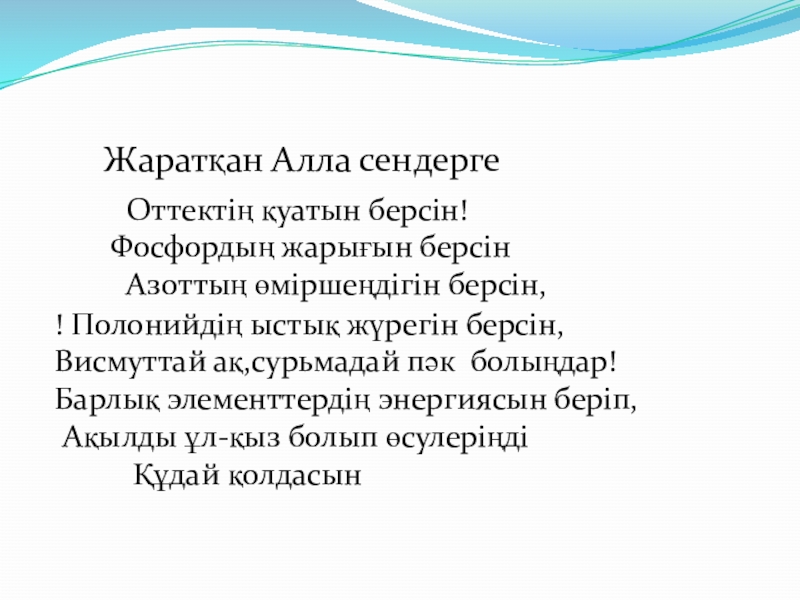 Висмуттай ақ,сурьмадай пәк болыңдар!