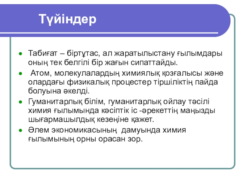 Табиғат – біртұтас, ал жаратылыстану ғылымдары оның тек белгілі бір жағын