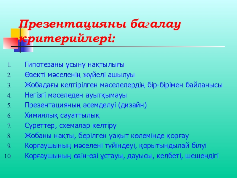Зерттеу тақырыбы бойынша презентциялар дайындау